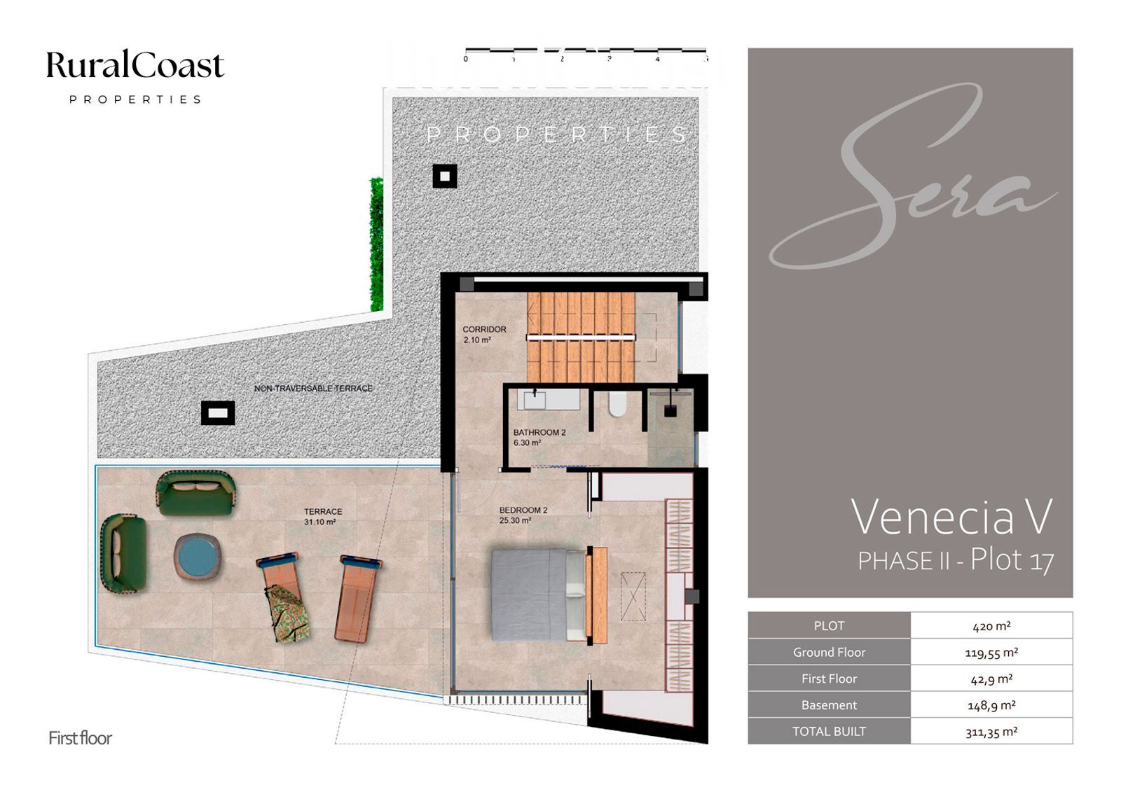 Die Villen verfügen über ein zeitgenössisches Design und mehr als 310 m² Wohnfläche auf privaten Grundstücken zwischen 365 und 680 m². Die Aufteilung umfasst 3 geräumige Doppelschlafzimmer mit Einbauschränken und 4 komplette Badezimmer, dazu eine moderne, voll ausgestattete Küche, die nahtlos in ein helles, offenes Wohn- und Esszimmer integriert ist.