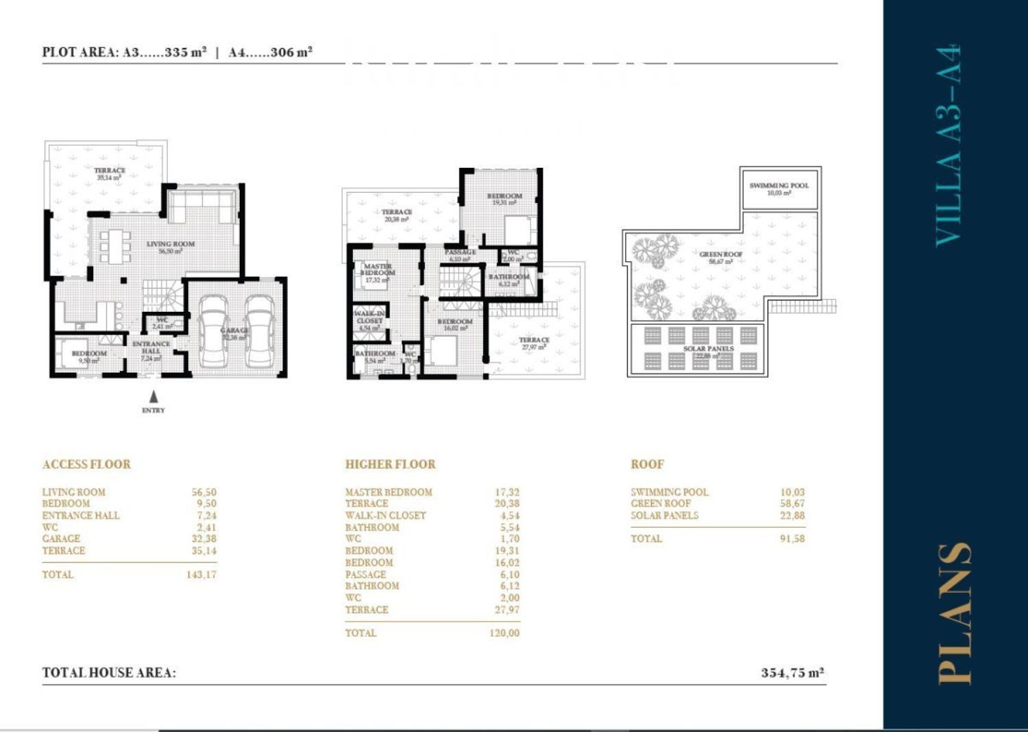Each villa boasts over 200 m² of built space, thoughtfully distributed across two main levels, a semi-basement, and a rooftop sun terrace that grants breathtaking panoramic views of both the sea and the mountains. The ground floor welcomes you with an entrance hall leading to the garage, a large open-plan living and dining area with a modern kitchen, and access to the main terrace. This floor also includes a bedroom and a guest bathroom. Upstairs, you´ll find three double bedrooms and two bathrooms, one of which is en-suite. The master bedroom features a spacious walk-in closet and access to a private terrace of 10 to 20 m², which can also be reached from the second bedroom. All rooms are filled with natural light through large windows that provide stunning sea and mountain vistas.