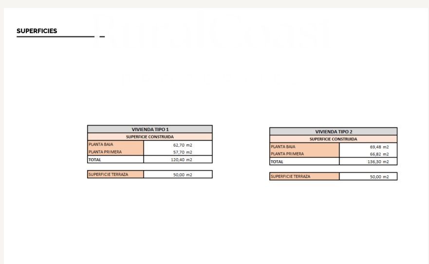 The villa´s ground floor includes an open-plan kitchen, a living-dining area, a guest bathroom, and a master bedroom with an en-suite bathroom. The first floor comprises two additional bedrooms, a bathroom, and a large terrace. This model can also be constructed on a single floor, allowing customization of the number of bedrooms and bathrooms to suit the buyer´s preferences. Various options are available upon request.