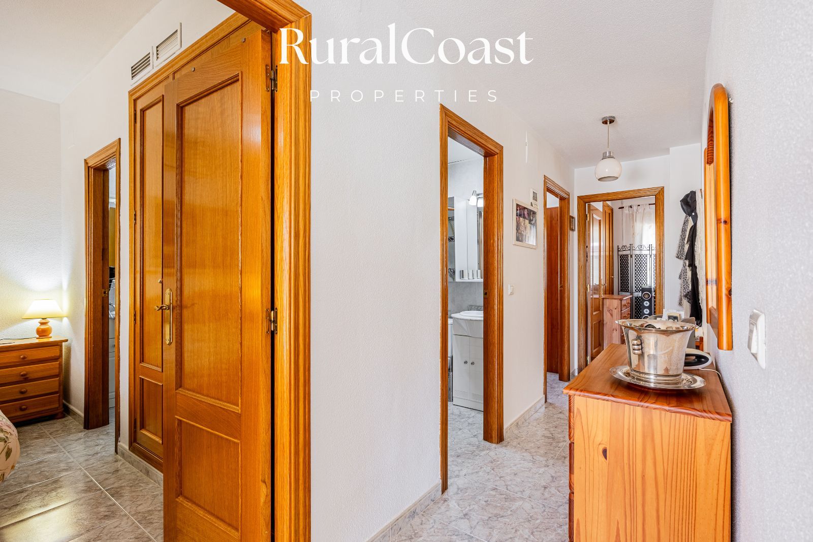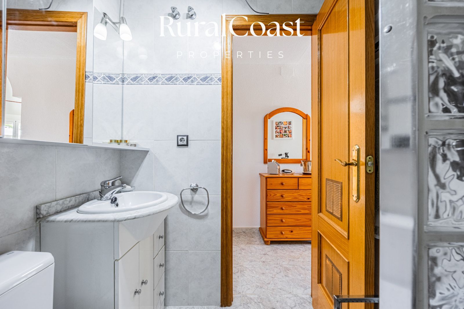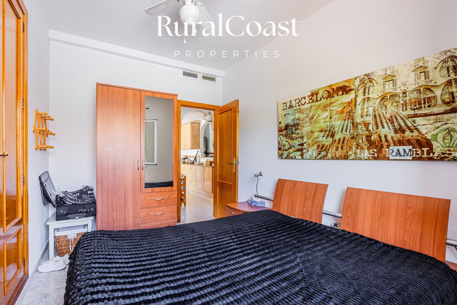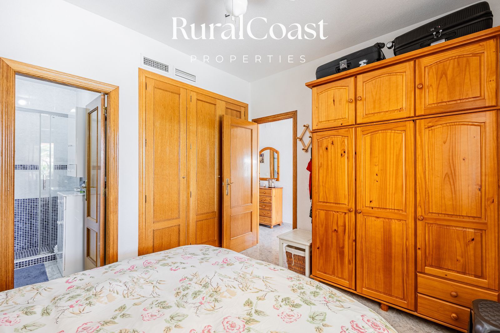 The property is distributed entirely on one level, making it a very practical and comfortable home for everyday living. It offers three spacious and bright bedrooms, two full bathrooms (one en suite), a cosy living room with large windows flooding the space with natural light, and a semi-open fully equipped kitchen with dining area, perfect for enjoying family or social gatherings. The design balances the modern comfort of a family residence with the warmth and Mediterranean style typical of the area.