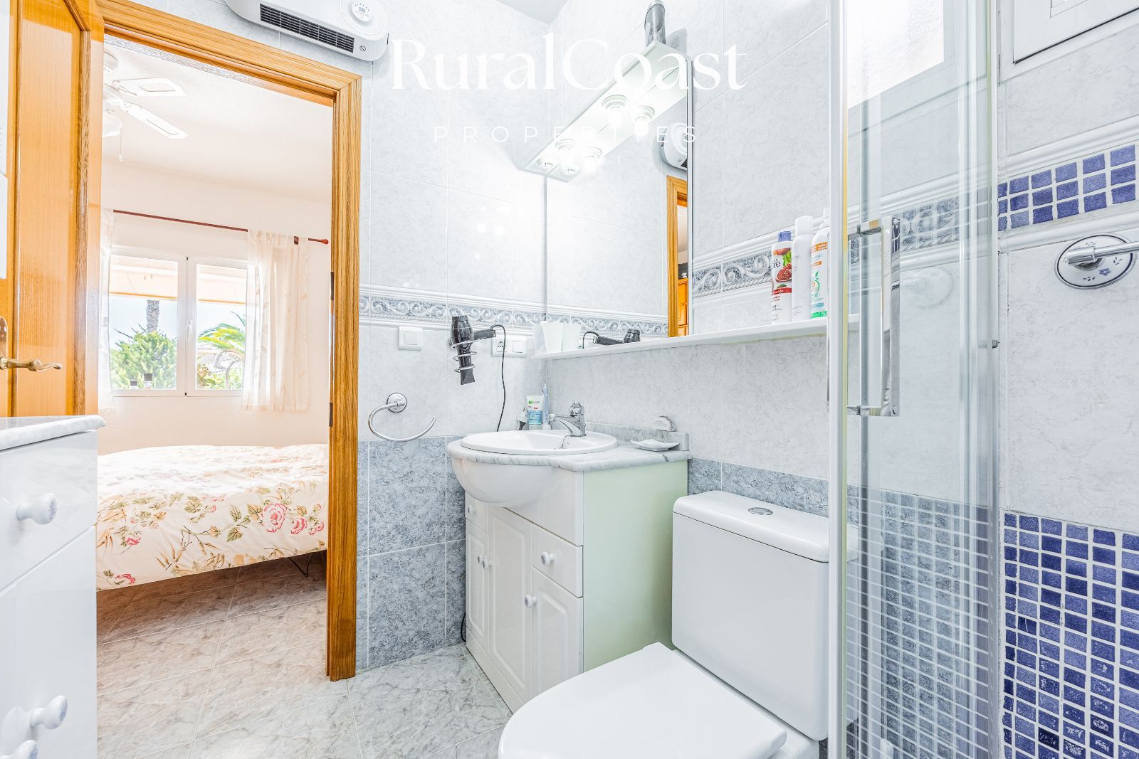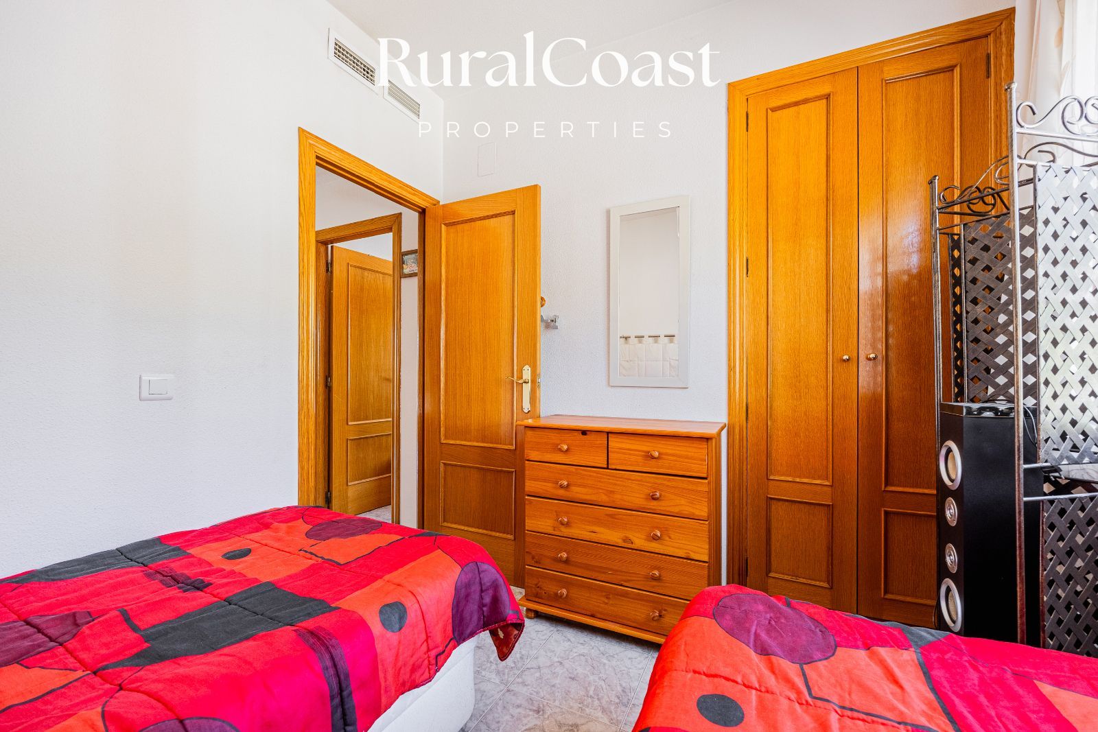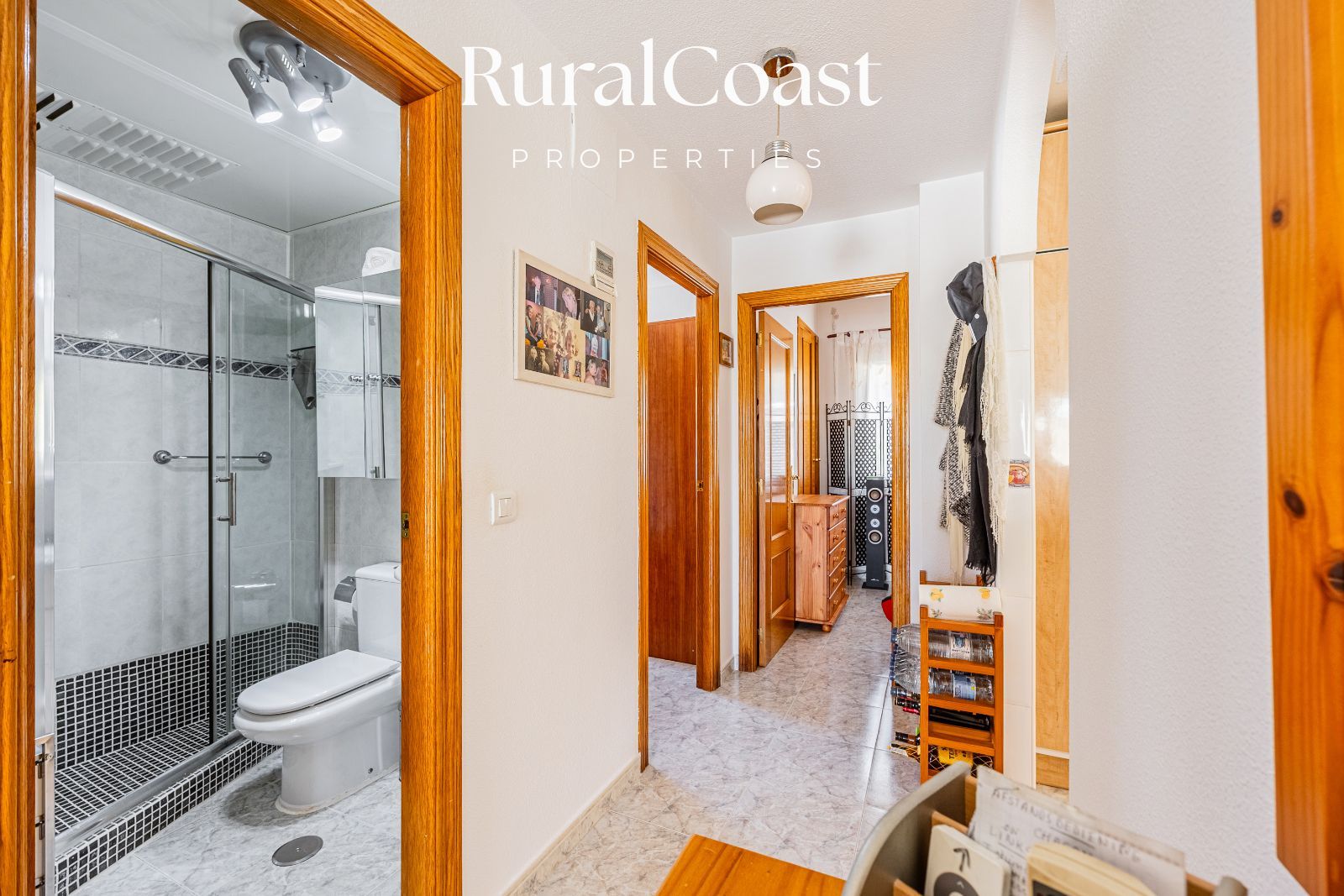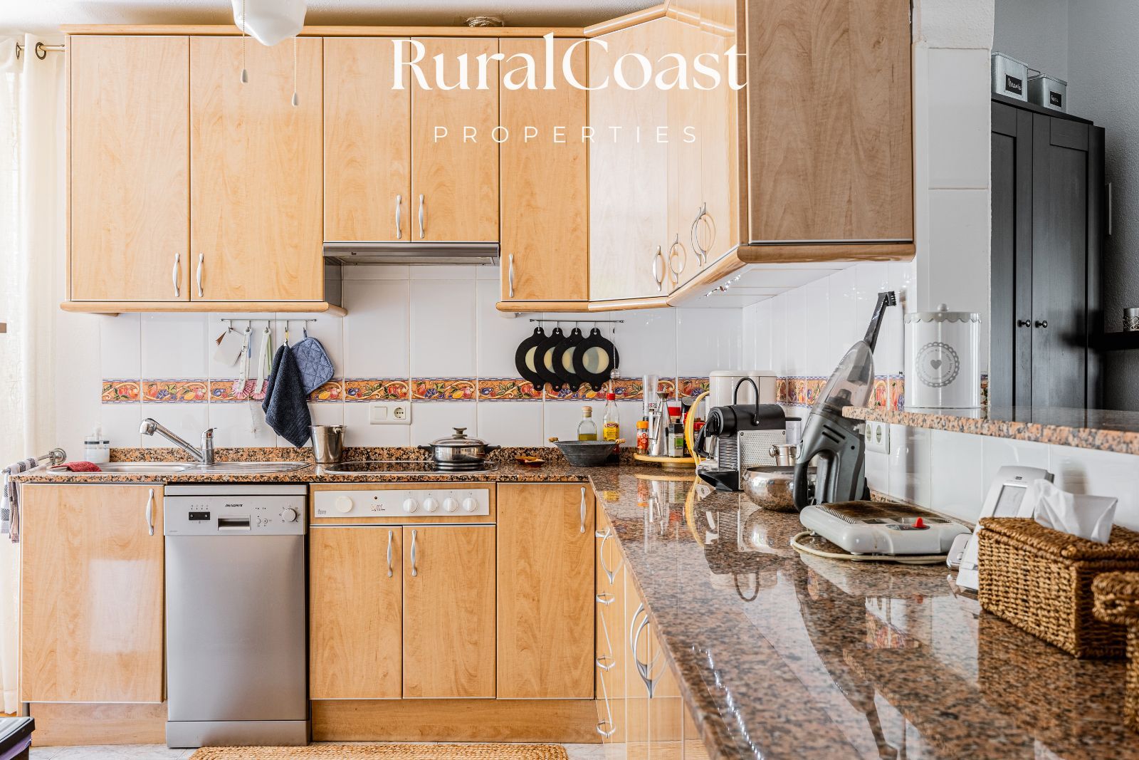The property is distributed entirely on one level, making it a very practical and comfortable home for everyday living. It offers three spacious and bright bedrooms, two full bathrooms (one en suite), a cosy living room with large windows flooding the space with natural light, and a semi-open fully equipped kitchen with dining area, perfect for enjoying family or social gatherings. The design balances the modern comfort of a family residence with the warmth and Mediterranean style typical of the area.