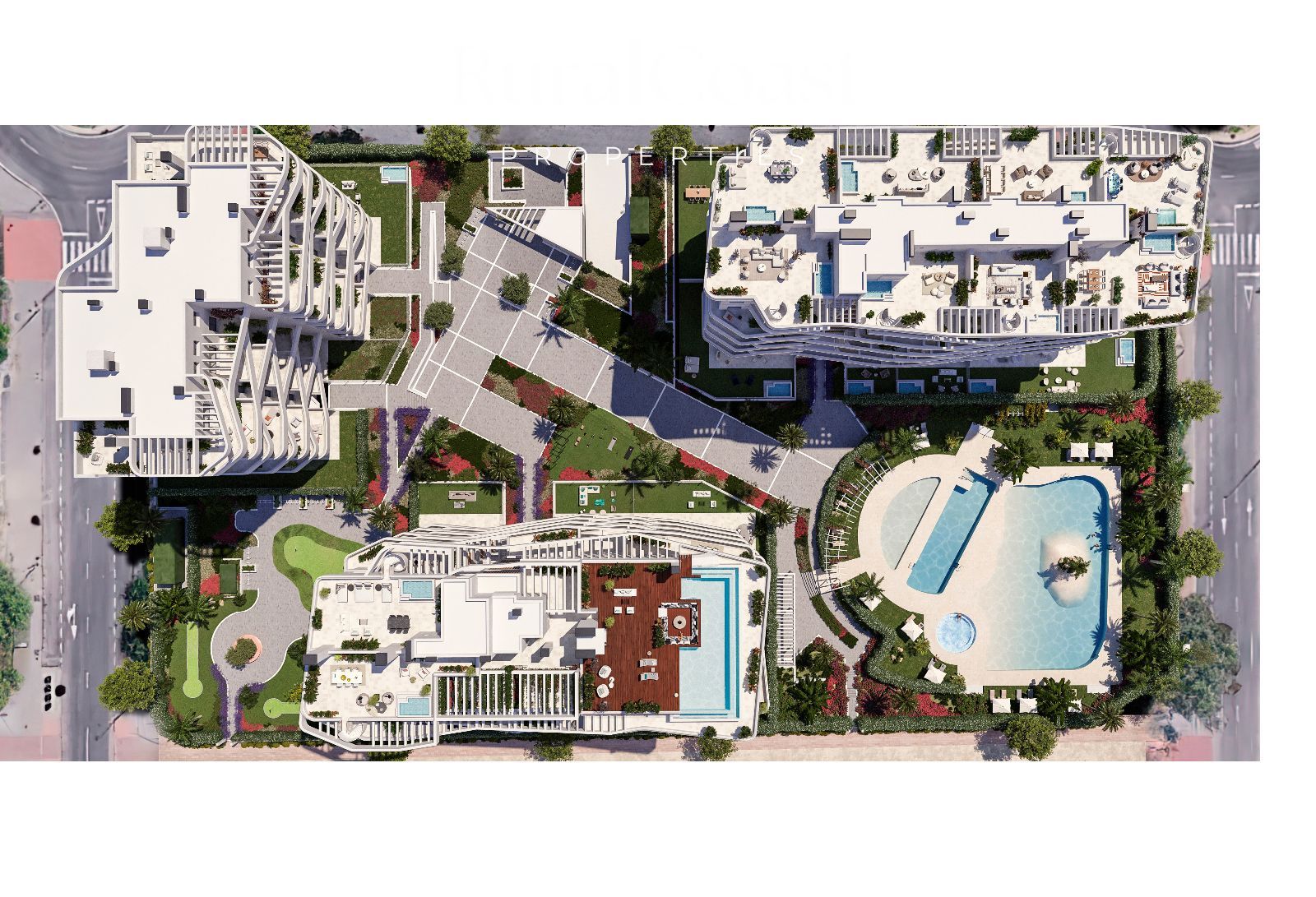 El complejo residencial ofrece piscinas, gimnasio, rooftop infinity pool, jardines, zona infantil y espacios de ocio, en un entorno tranquilo, seguro y con vistas abiertas al mar Mediterráneo.