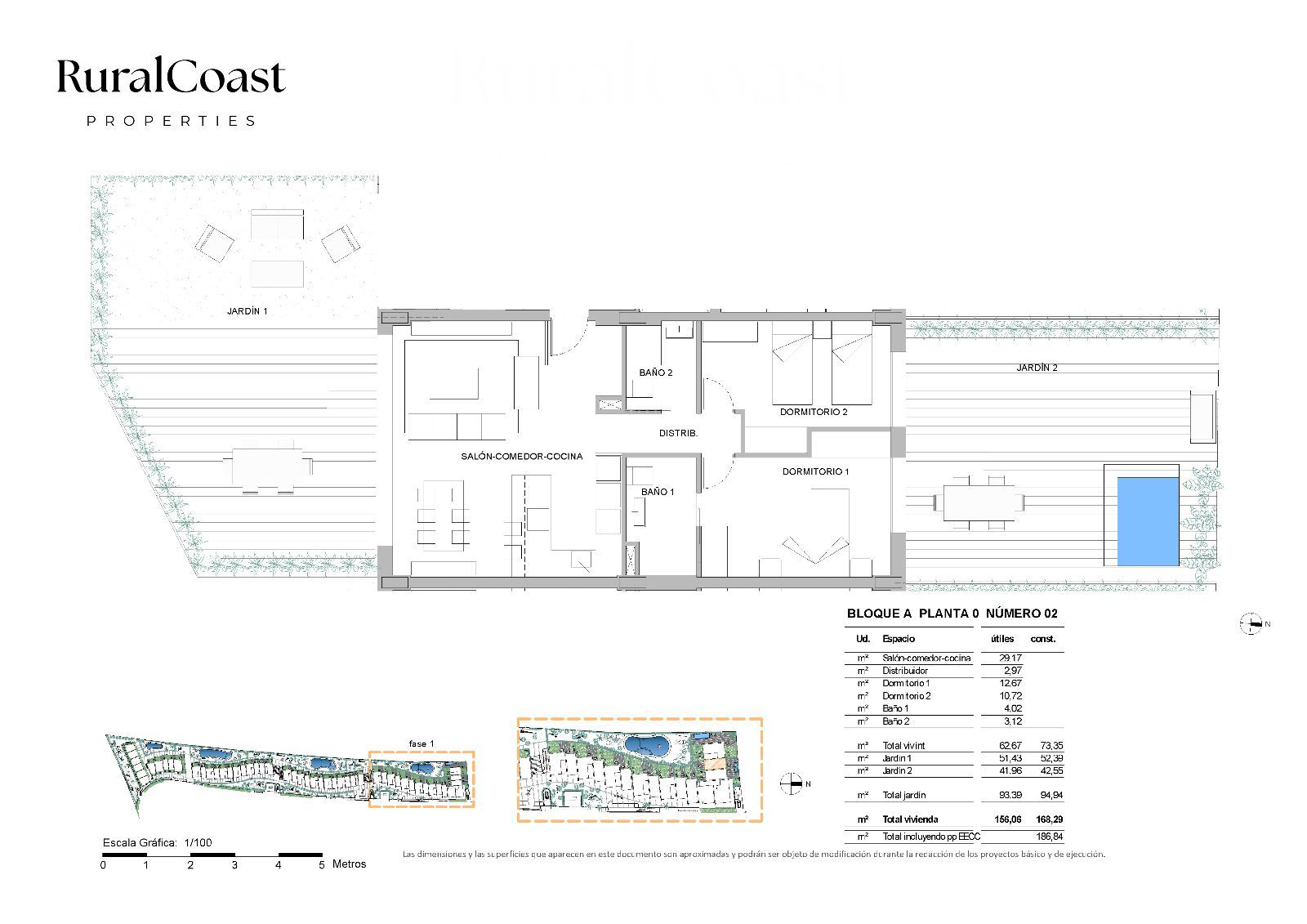 La vivienda está distribuida en una sola planta, con un diseño de concepto abierto que une el salón, comedor y cocina en un mismo ambiente, favoreciendo la amplitud y la conexión con el exterior. Grandes ventanales proporcionan abundante luz natural y acceso directo al jardín privado, un espacio perfecto para relajarse, disfrutar del clima mediterráneo o compartir momentos con familiares y amigos.