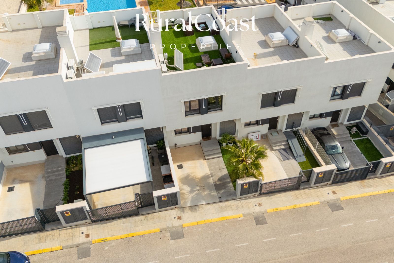 Casa adosada moderna con piscina, jardín y terraza en la azotea en Alenda Golf.