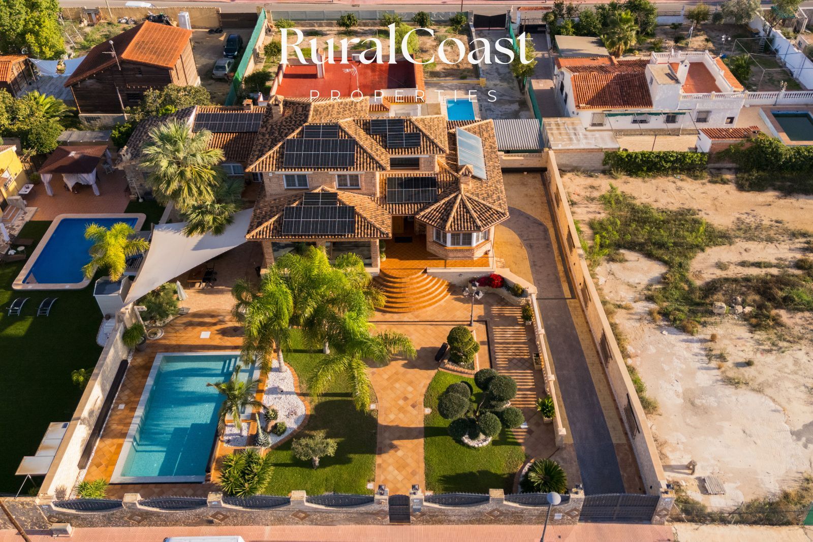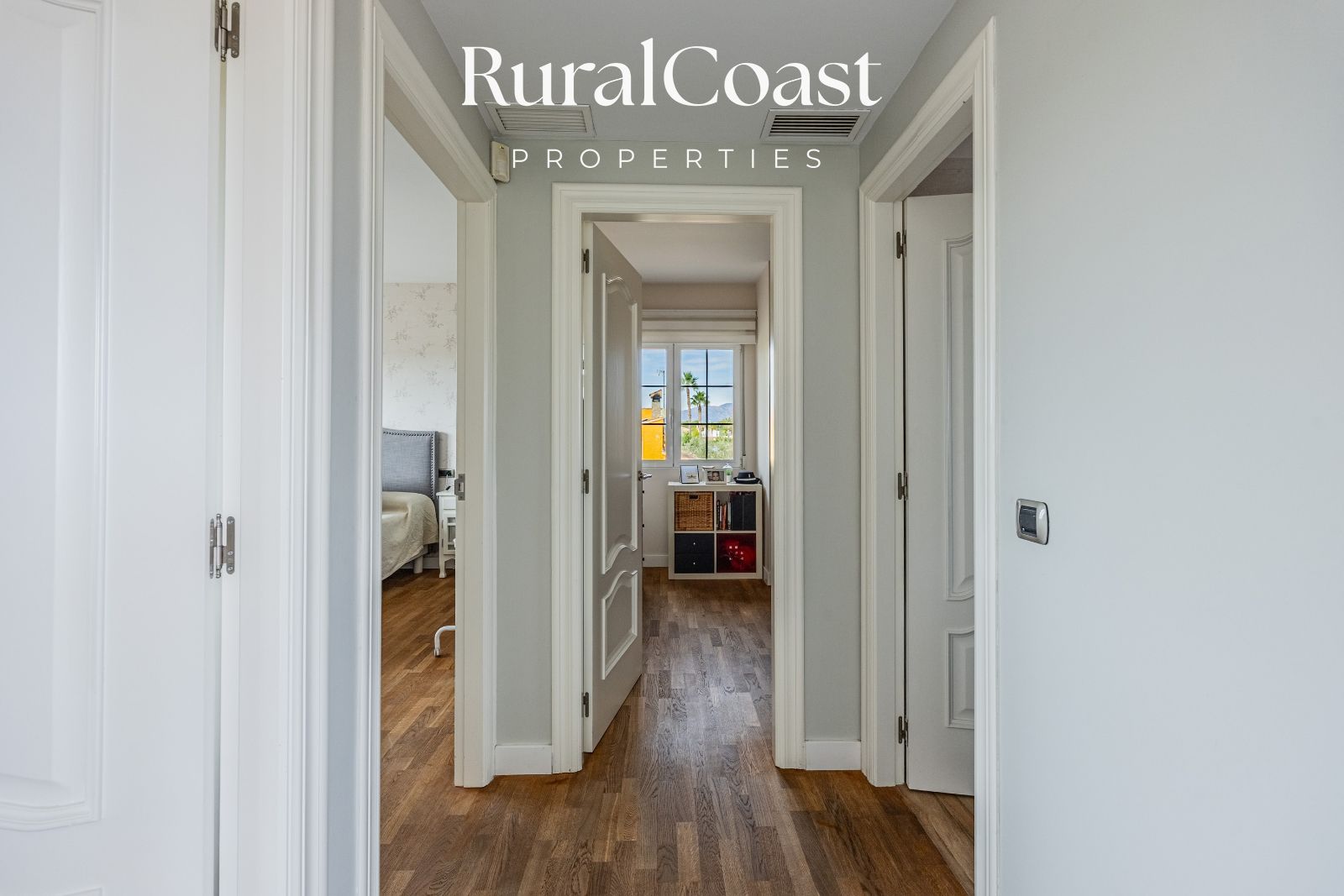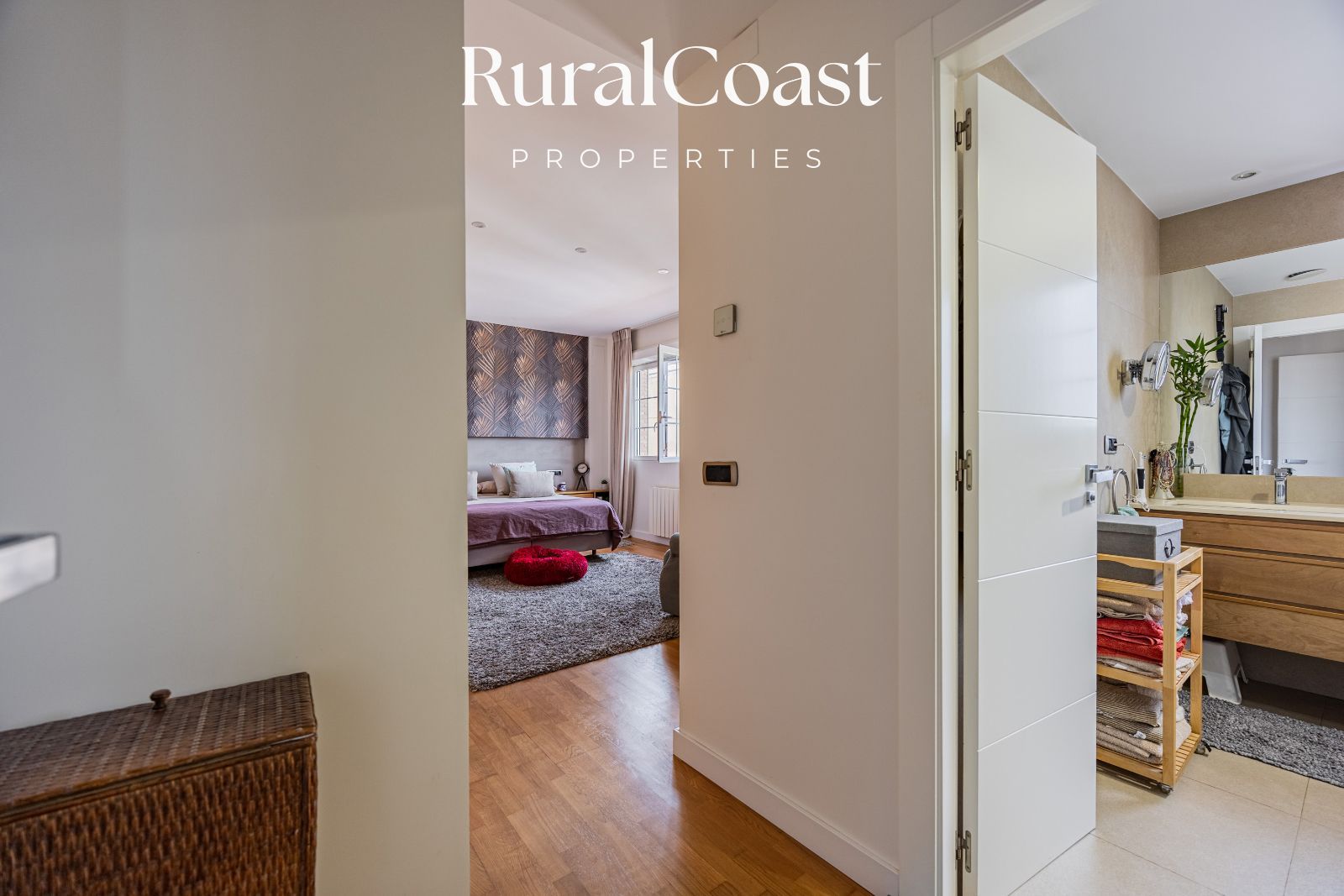 El exterior es un auténtico oasis: piscina desbordante con sistema salino, jardín ajardinado con riego automático y amplias terrazas perfectas para disfrutar del clima mediterráneo durante todo el año. Además, dispone de un anexo independiente en dos plantas con sala de estar, barbacoa, sala de juegos y aseo.