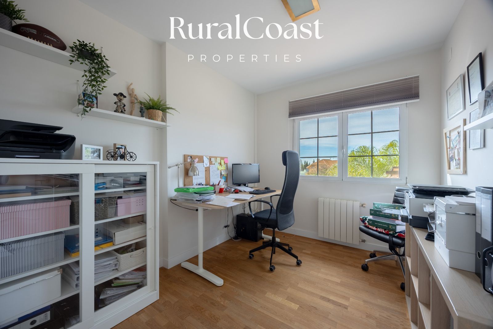 En la planta superior (45 m²) se sitúan otros dos dormitorios, un baño completo y un agradable estudio ideal como despacho o zona de lectura.
