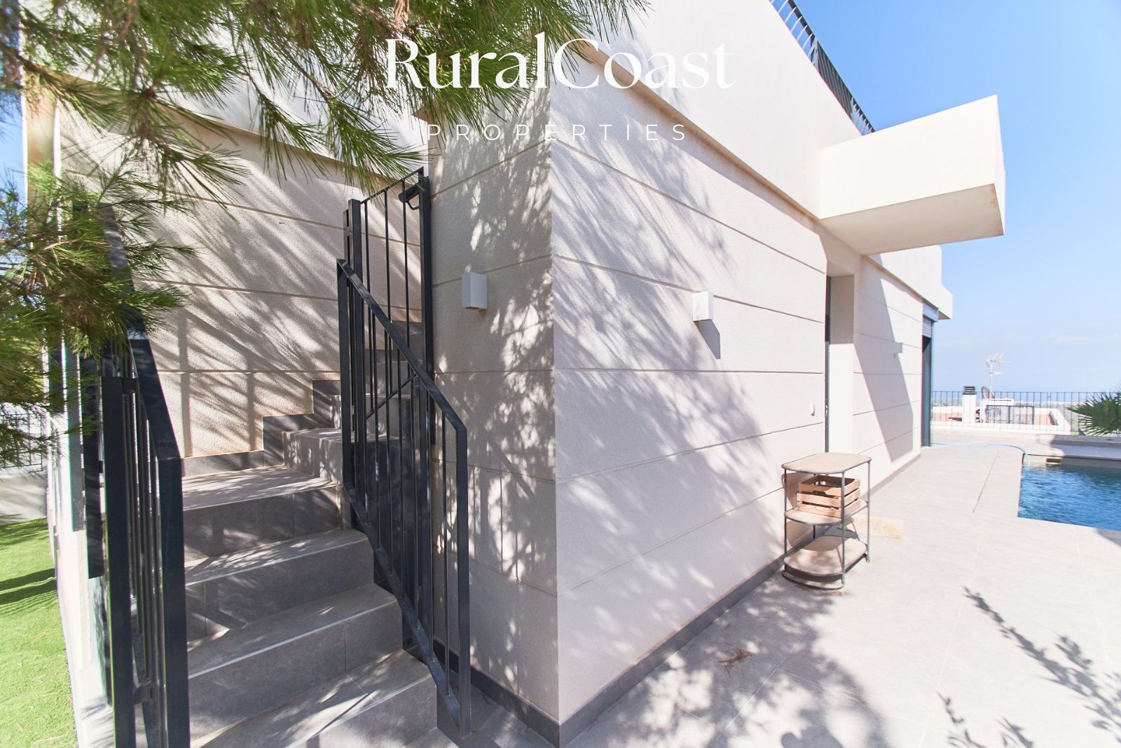 En el exterior encontramos una terraza de acceso, zonas ajardinadas y una piscina privada de casi 20 m², ideal para aprovechar los más de 300 días de sol al año y la agradable temperatura media de la Costa Blanca.
