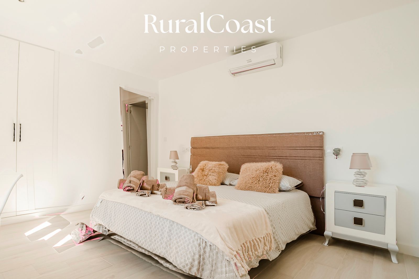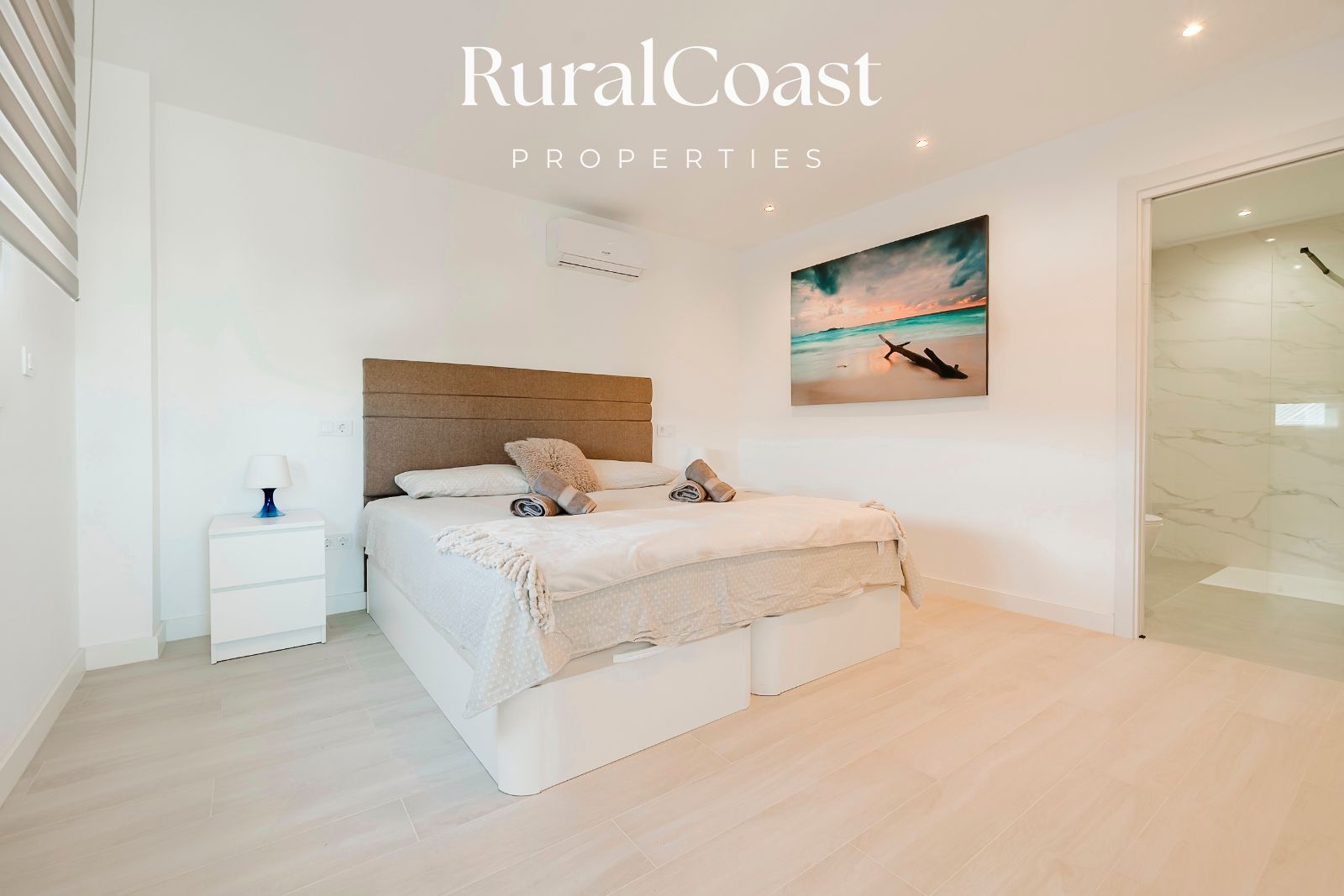 La propiedad cuenta con 4 amplios dormitorios, cada uno con baño privado y ducha italiana. Una de las habitaciones incluye además una bañera independiente, ideal para disfrutar de momentos de relax. Todas las estancias están equipadas con aire acondicionado, persianas eléctricas y armarios empotrados, garantizando confort y privacidad para todos los huéspedes.
