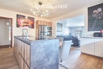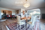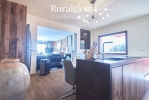 El chalet consta de un gran salón comedor de 53 m² con salida a un amplio solárium desde el que se disfrutan preciosas vistas a la piscina y la montaña. La sala de estar es luminosa y espaciosa, con chimenea decorativa y mucha luz natural, dividida en zona de estar, comedor y otros espacios de descanso conectados a una cocina moderna semiabierta de 15 m² completamente nueva, equipada con isla con extractor integrado, gran mesa de desayuno, nevera americana y un amplio frente de muebles altos.