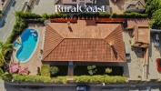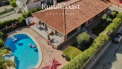 La propiedad se encuentra en un lugar privado y tranquilo y disfruta de la ventaja de tener vistas a la montaña. Enfrente de la vivienda hay una gran piscina de 63 m² con ducha exterior, terraza y una terraza cubierta elevada, donde podrá disfrutar de largos y hermosos días rodeado de su familia y amigos. Hay estacionamiento fuera de la carretera, un estacionamiento cubierto y un camino de entrada con capacidad para varios coches.