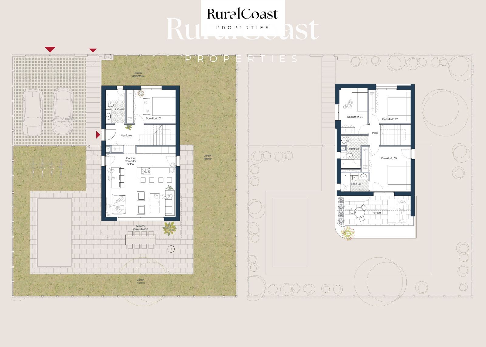 Cada vivienda está diseñada con un estilo moderno y funcional, orientadas para aprovechar al máximo la luz natural, y con una distribución interior equilibrada para ofrecer privacidad, amplitud y confort: