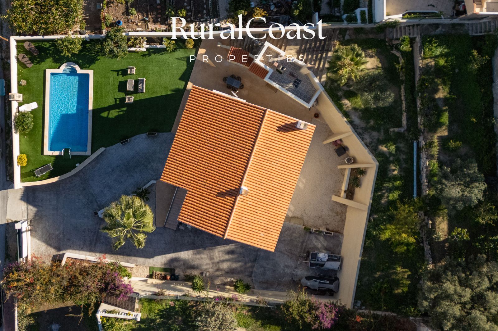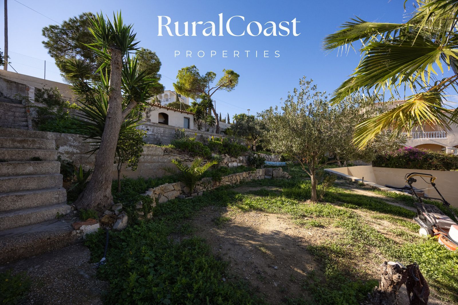 La propiedad se levanta sobre una parcela de casi 1.300 m², un espacio generoso que permite disfrutar plenamente del exterior durante todo el año. El terreno alberga un jardín amplio, zonas abiertas para el ocio y una piscina privada que se integra perfectamente en el entorno. Además, dispone de un práctico baño exterior, ideal para mayor comodidad en los meses de verano.