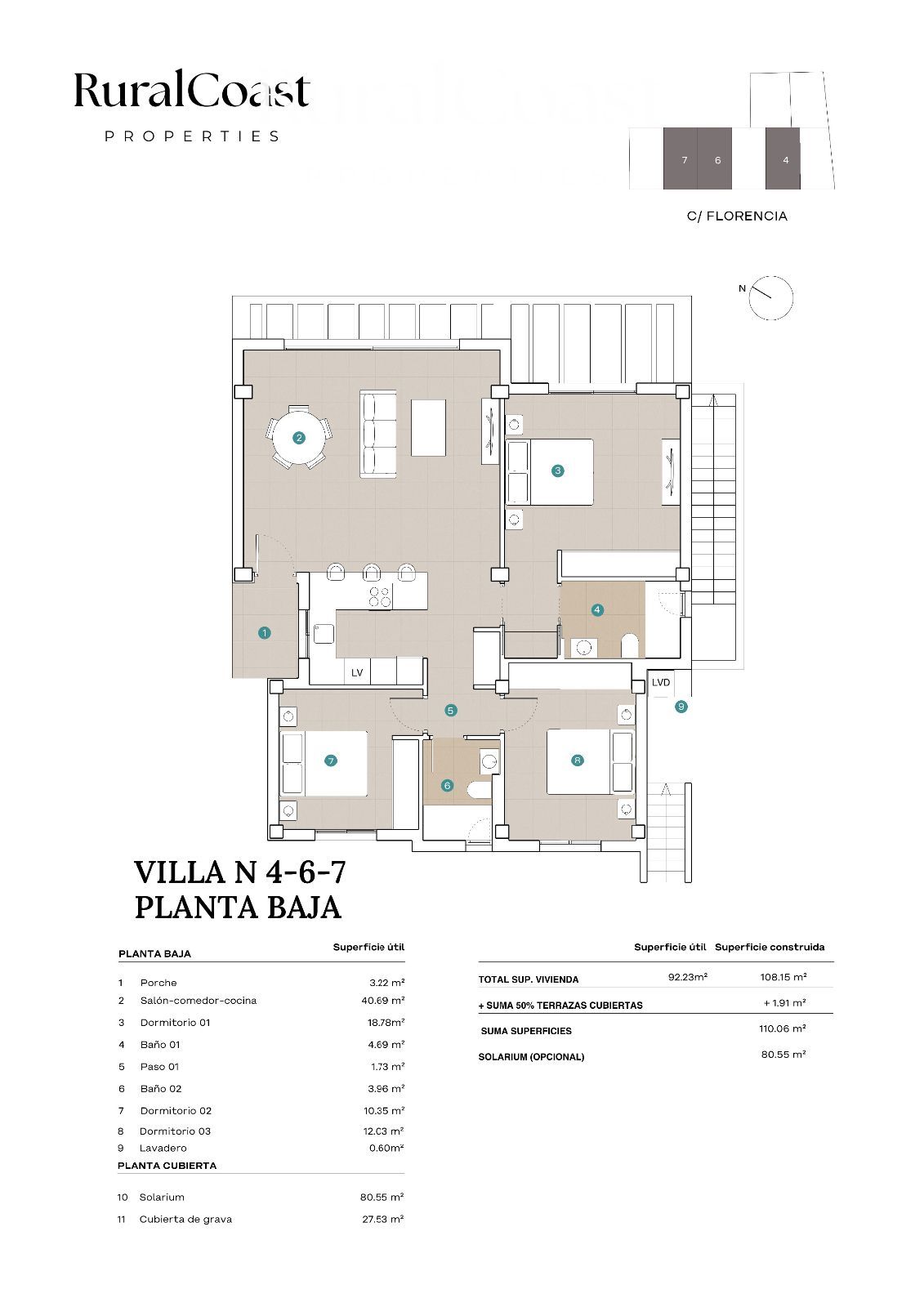 Cada villa se levanta sobre parcelas de 423 m² y cuenta con desde 108 m² construidos, ofreciendo la posibilidad de elegir entre 3 y 5 dormitorios y personalizar la distribución según las necesidades de cada familia. Esta flexibilidad convierte cada vivienda en un proyecto único y adaptado a su propietario.