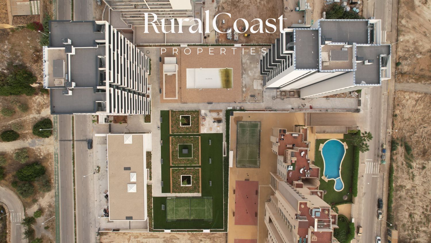 Gemeenschappelijke ruimtes met tuinen, een groot zwembad, een padelbaan en een overdekte recreatiezone nodigen u uit om na een zonnige dag op het strand te blijven om van de zonsondergang te genieten. Elk gebouw heeft een gemeenschappelijke ruimte op de negende verdieping, bestemd voor recreatie met uitzicht op zee. Ondergrondse parkeerplaatsen en opslagruimtes zijn beschikbaar voor elk appartement.