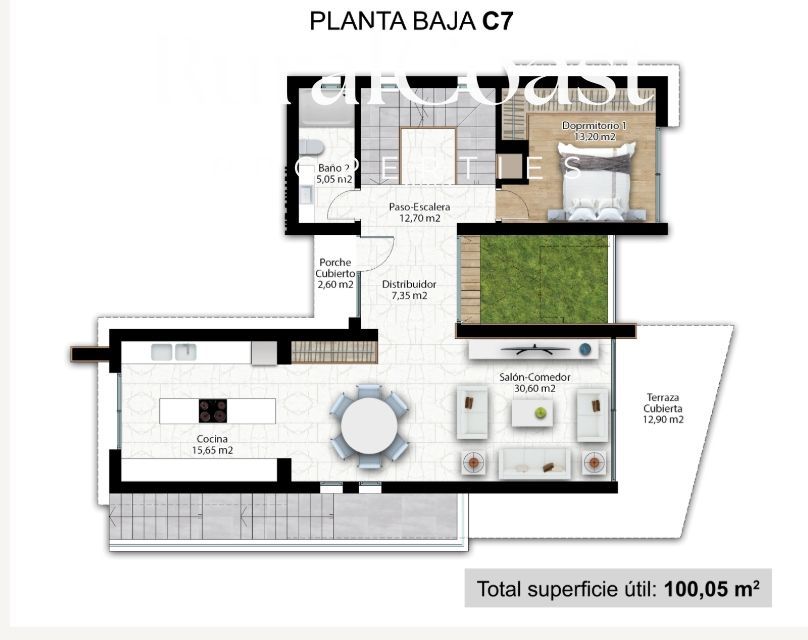 ✔ Materialen met hoge energie-efficiëntie en zuidgerichte oriëntatie voor optimaal gebruik van natuurlijk licht.