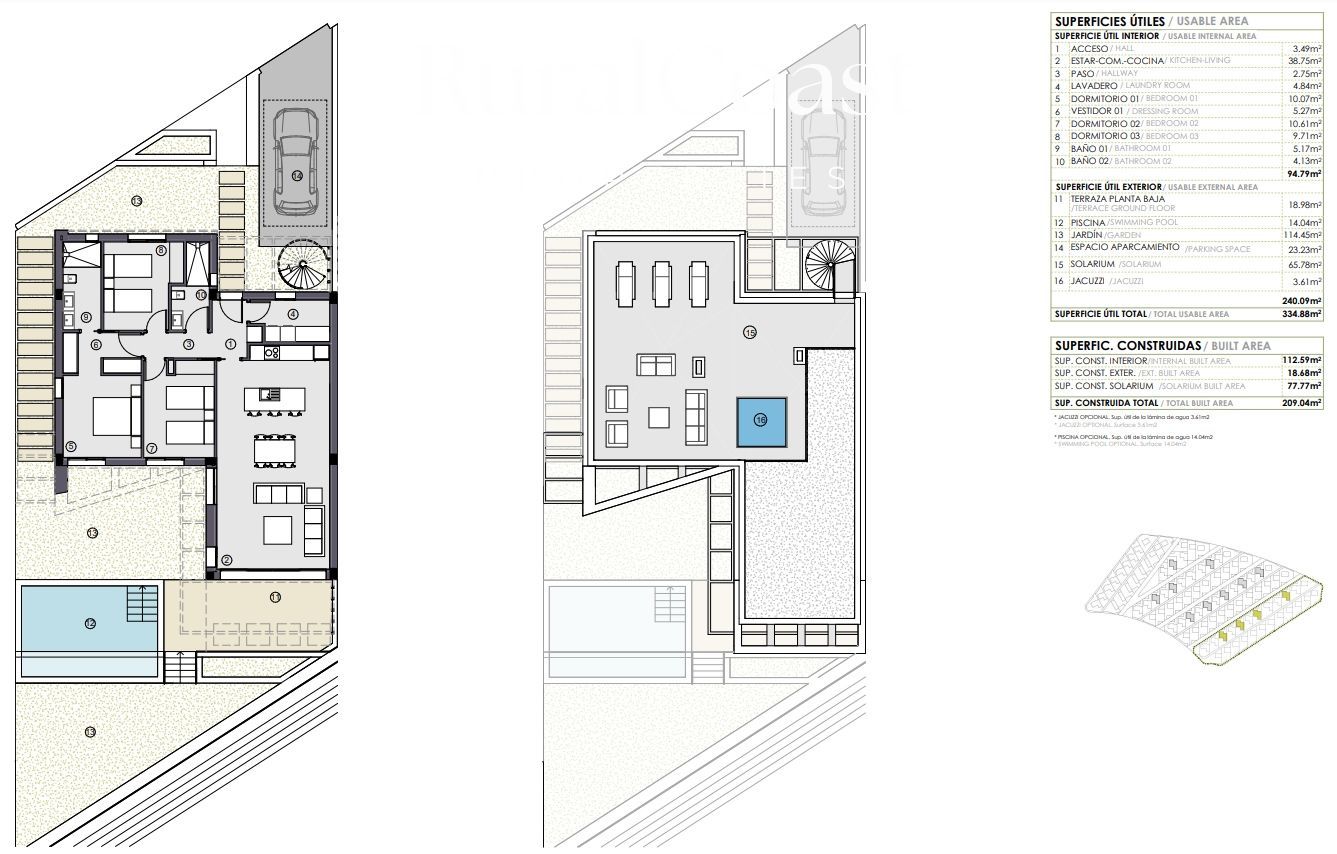 De woningen zijn ontworpen om optimaal te kunnen genieten van buitenruimtes, met integratie van terrassen, tuinen, veranda´s en solariums in elke woning. Er is de mogelijkheid tot het toevoegen van een privézwembad of een jacuzzi op het solarium, wat vooral aantrekkelijk is voor woningen op de begane grond.