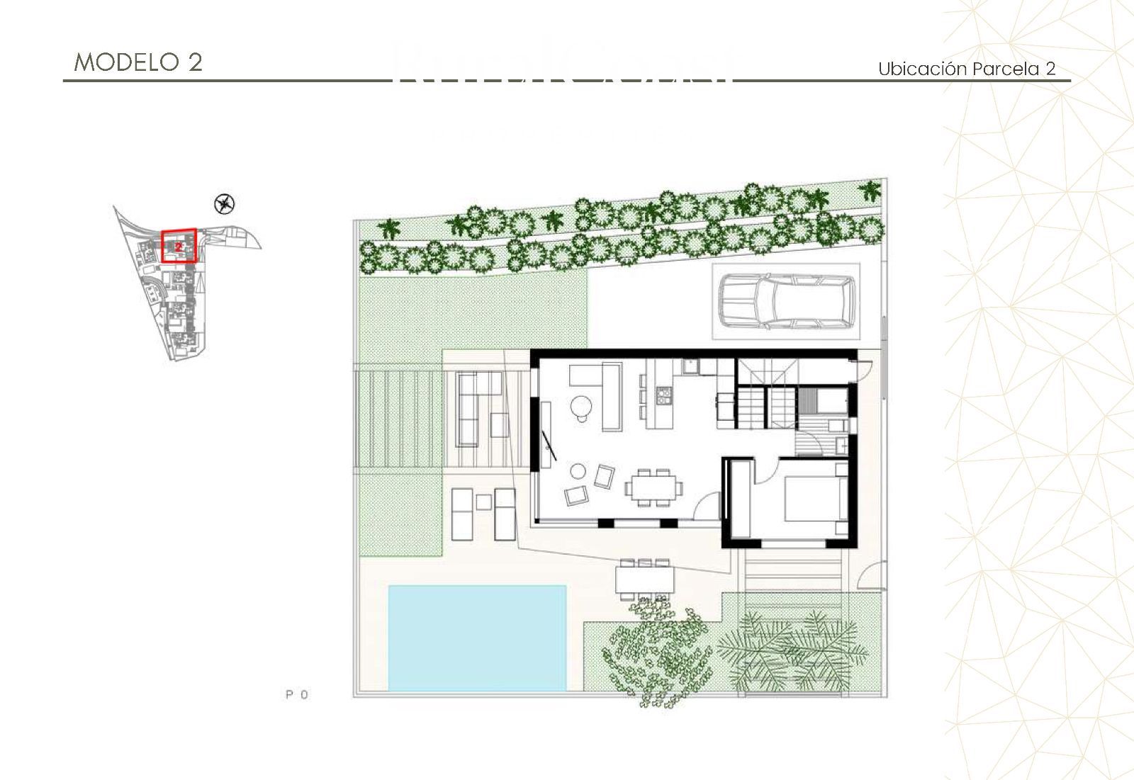 Buiten beschikt de villa over een aangelegde tuin (97 m²) met mediterrane vegetatie, een privéparkeerplaats (31 m²) en een aparte voetgangersingang. De constructie is uitgevoerd met hoogwaardige, duurzame materialen: aluminium kozijnen met thermische onderbreking, energiebesparende installaties, airconditioning via kanalen, en een volledig ingerichte keuken met premium afwerking.