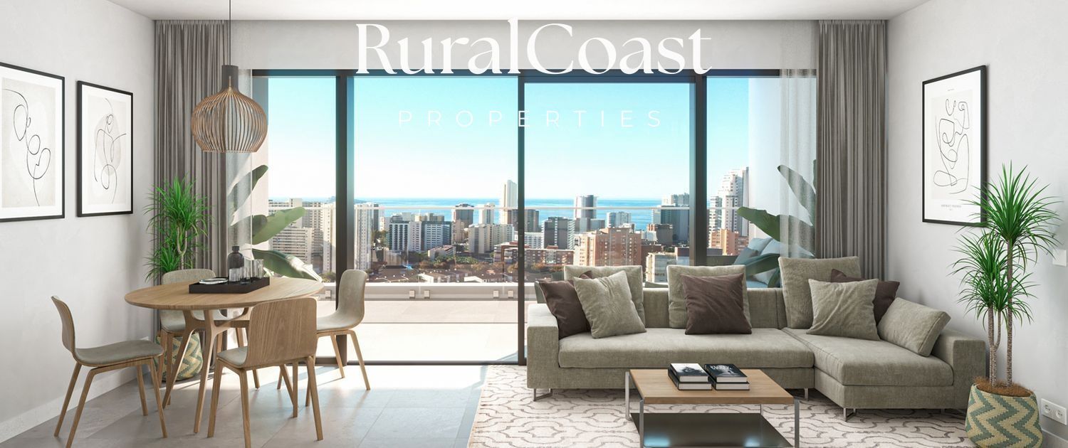 Spectaculair appartement in Poniente gebied, Benidorm. 2 slaapkamers. 2 badkamers. Zwembad. Parkeerplaats. Opslag. Uitzicht op zee en de bergen
